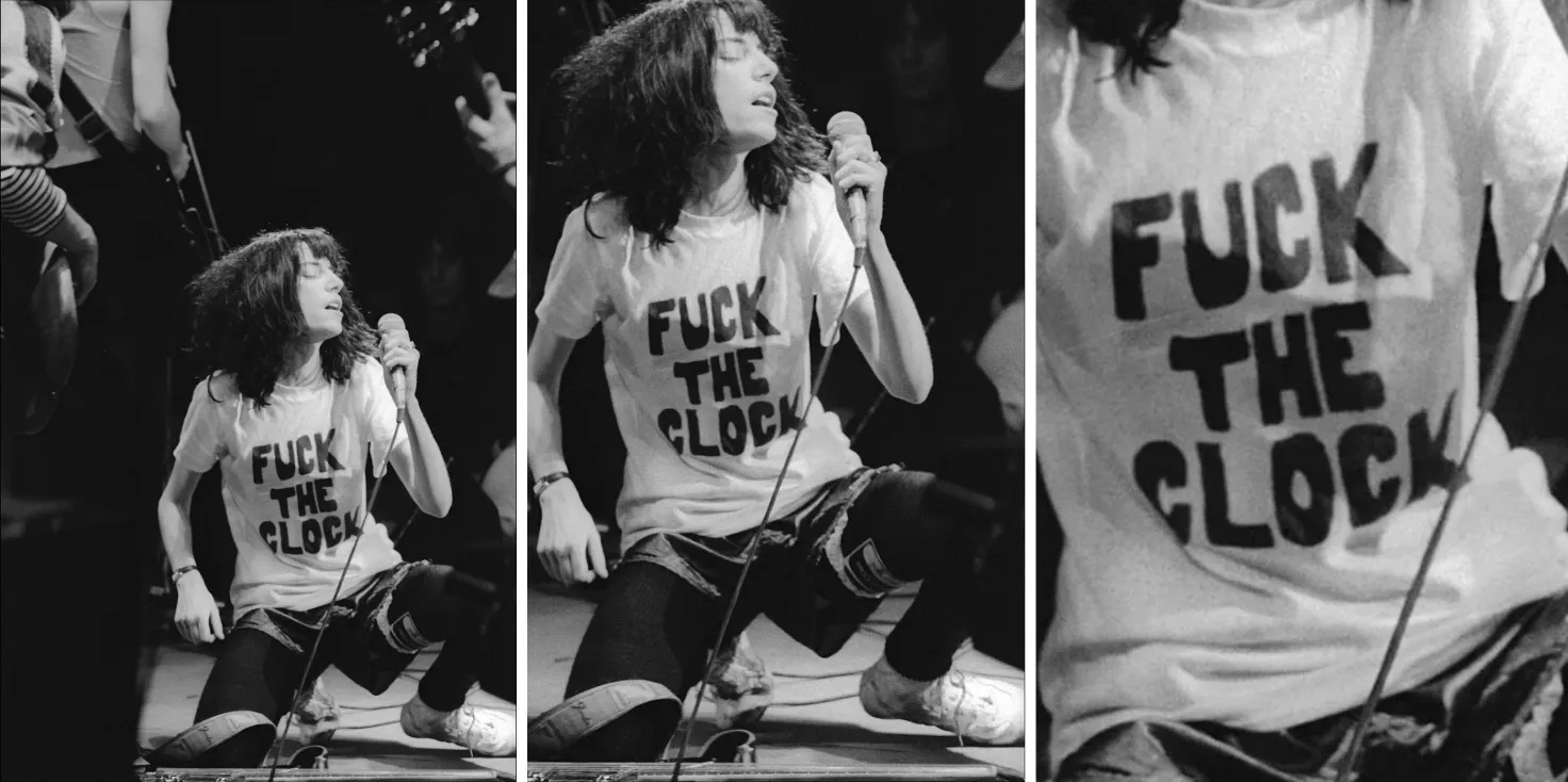 Imagine it’s new year’s eve, New York City, 1977, Patti Smith wears a t-shirt that reads 'Fuck the Clock' and play a concert at CBGB, a legendary club frequented by Blondie, Madonna & Talking Heads. About 17 minutes into the gig, with the impassioned frenzy of a stark-raving doomsdayer or prophet Patti slams these words: